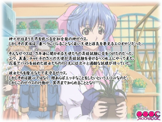 そんなゼウスは、3年毎に開かれる天使たちの昇級試験に目をつけたのだった。ユウ、美喜、チャド子の3人の天使が昇級試験を受けるべく地上にやって来た。花屋でバイトを始めた彼女たちの行く先には次々と過酷な試練が待っていた。