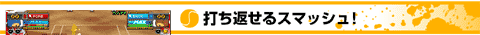 限られた条件で発動する従来のテニスゲームとは違い、タイミングをあわせればワンボタンでいつでもスマッシュを打つ事ができるぞ!どんどん打っていこう! | ||||||||||||||
