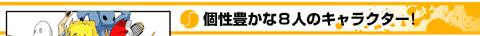 8人の個性豊かなキャラクター達。それぞれ足が速かったり、力が強かったり。スーパーカウンターもキャラクター別に違う技が用意されているぞ! | ||||||||||||||