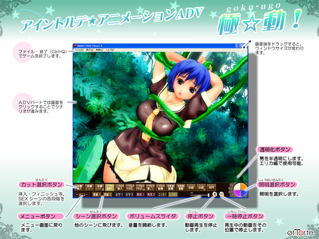 Flashアプリケーション 動画解像度:960×720 H動画数:85カット ヒロインフルボイス JPEGスチル123枚付属