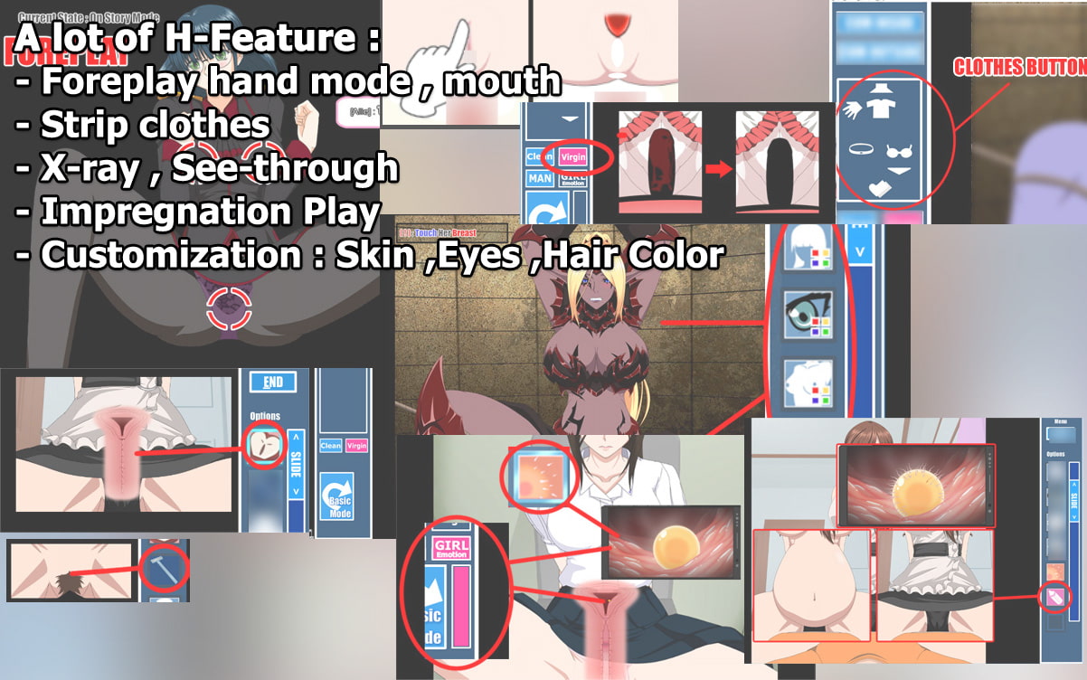 - 髪の毛、目、体毛などヒロインの色をカスタマイズ。