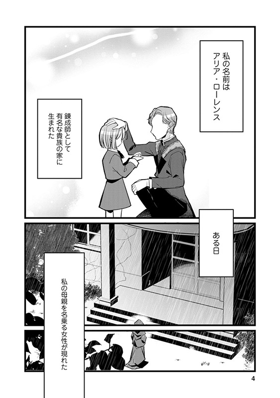アリアは有能な錬成師だったが、腹違いの妹の陰謀で宮廷錬成師の座を追われてしまう。行く当てもなく森で途方に暮れていたアリアは、同じく錬成師を志していた旧友ユレンと再会する。