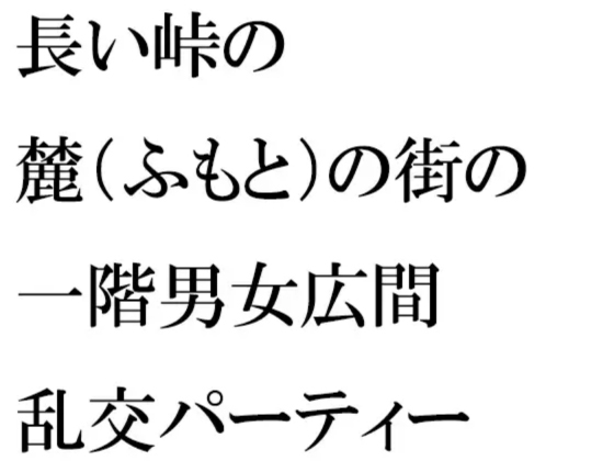 長い峠の麓(ふもと)の街の一階男女広間乱交パーティー