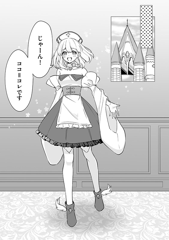 一方、場面は変わって中世ファンタジー風の世界。ヒロイン「ココ=ニーナ」は神殿の大聖堂におもむき、成人の儀に臨んでいた。