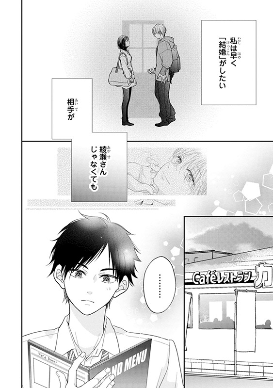 「俺は君と結婚するつもりなんてないから」湊にそう宣言され、始まったふたりの同棲生活。湊のことを好きになっちゃいけない。わかっているのに、あきらの気持ちは揺れ動いてしまう…。