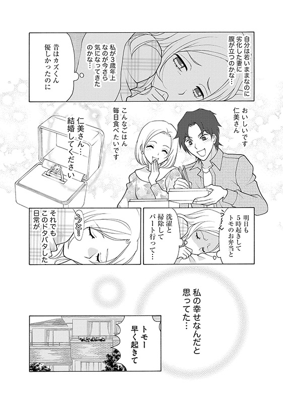 専業主婦の仁美は、夫のカズオから「グズ」「デブ」と罵られる毎日。