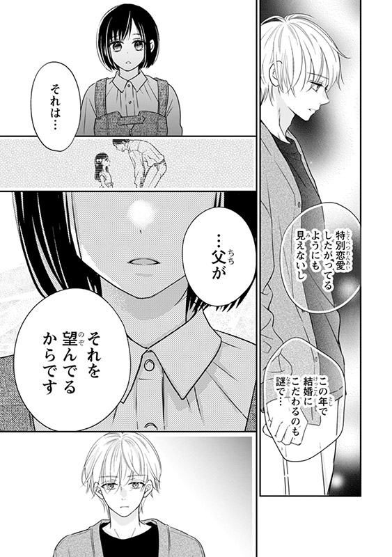 あきらの実家でのひと時を経て、ますます湊のことが好きになっていくあきら。そんな時、滝澤からの誘いで、滝澤の誕生日にデートをすることに…! プレゼントに悩むあきらは湊にも相談するが、滝澤と会うと知った湊から出た言葉は「惚れられないように気をつけて」…? ※『花嫁殿のレシピ 分冊版 :10〜12』を収録