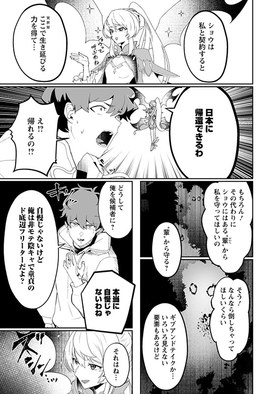 異世界に転移し、魔獣の棲む森をさまよっていた清水正一は、可憐な妖精・アミィちゃんに命を救われる。さらに異世界で生き抜くためのスキルを与えられるも、代償として「月1で女のコを絶頂させないと死ぬ」身体になってしまった! 女性経験のない正一は尻込みするものの、アミィちゃんの巧みな話術により、心の奥底にひそむ欲望に正直になっていき…。