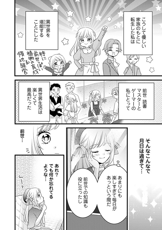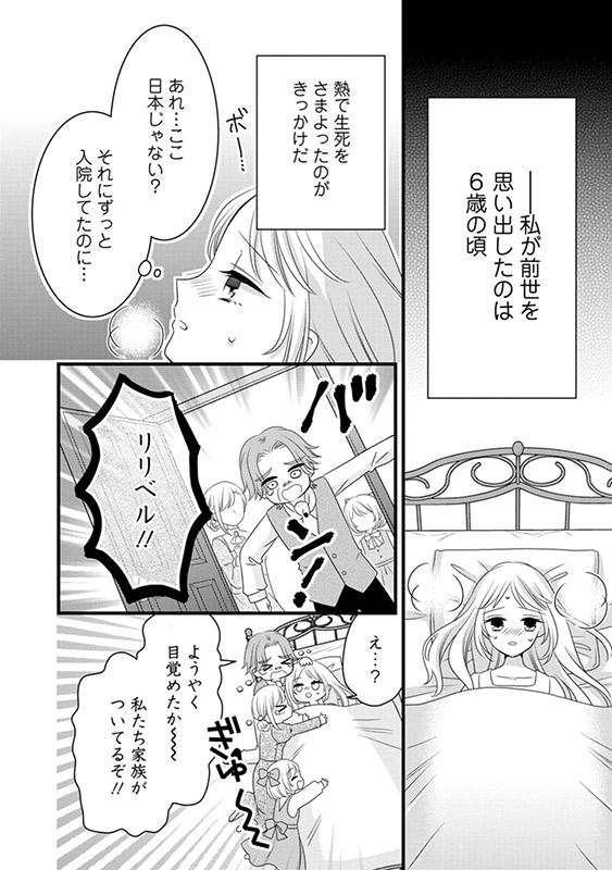 病床で寝ていたはずが、伯爵令嬢リリベルに転生した主人公。前世の知識を元に幸せな日々を過ごすが……何かが足りない!