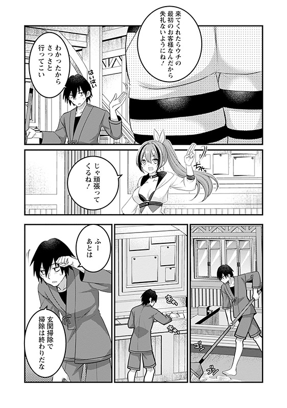 チートスキルを授かり、現代から異世界へと転生した元旅館従業員の遠野ジン。転生して束の間、モンスターと遭遇したジンはスキルで抵抗を試みるが、ただただ手からお湯が出るだけ!?
