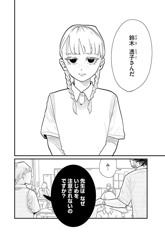 酷いいじめを受け、「私が死ねばみんな後悔してくれるだろうか?」と思い詰めている小川の前に、転校生として現れた三つ編みの少女、鈴木。