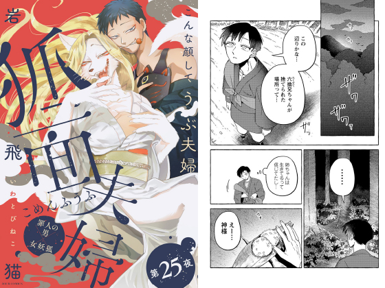 『透明男と人間女』の岩飛猫、最新作『狐面夫婦/こめんふうふ』 明治を舞台に描かれる【罪人の男×女妖狐】の”だまし愛”な夫婦の営み――。 現世と隠世がまじりあう世界に、古めかしい日本家屋が一軒。そこに暮らすは、人間の男と女狐の新婚夫婦。ふたりの仲睦まじい時を邪魔するのは、人喰い雀だけじゃなくて…? 人と妖の暮らしは、昼はキケンで夜は甘い!? SNSでも話題!ハードモードなピュア異類婚姻譚。