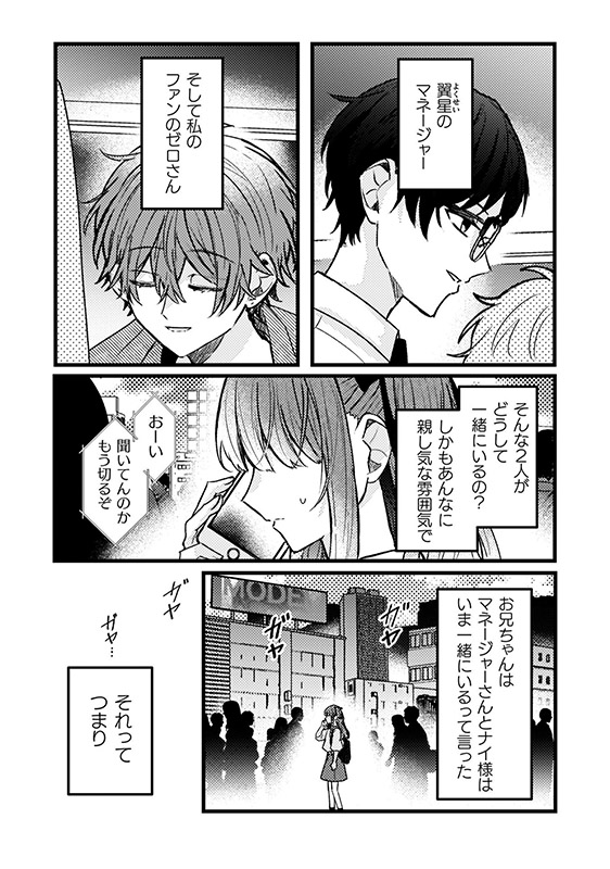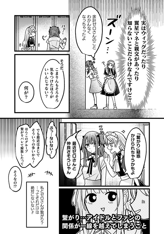 翼星のマネージャーとゼロが 一緒にいるところを目撃してから、 ゼロの正体が気になるこまり。 こまりの様子を見かねたユウキは、 女装して妹のライブに潜入することに!? そしてついに、すべてが明かされる瞬間が―― 両片想いアイドルラブコメ完結!! 【収録話】 第21話〜最終話 描き下ろし漫画『中学生文野こまり』