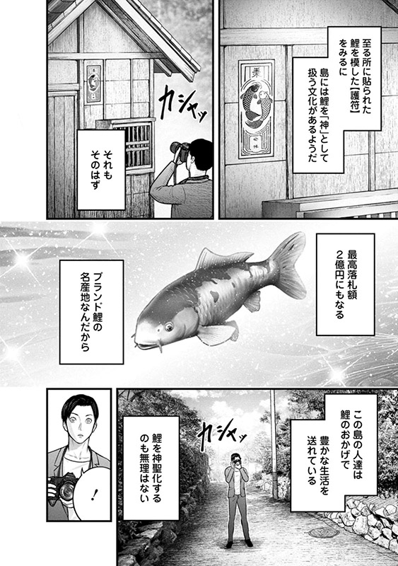 【戦慄の錦鯉パニックホラー、開幕】 最高落札価格が2億円に達する錦鯉。その名産地として知られる西木島に、写真家・田村慎司は家族とともに移住してきた。 島は自然に恵まれ、島民も温かい。しかし、その小さな島には門外不出の”ある秘密”があった。
