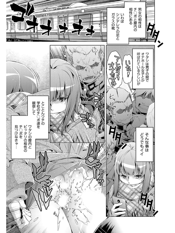 以前の付き合っていた彼氏に騙されてその男達に集団○○○されてしまった過去がある女のコ。電車で毎日痴●されるのは想定済みでもうパンティは穿いていない。無理矢理入れてくるやつからパンティの中に射精してくるヤツなど様々だがもう抵抗もしない。逆に自分のアソコにフィットする、自分をイかせてくれるチ○ポを探すためにわざわざ電車で痴●を待つようになった。