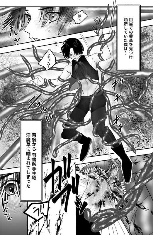 優秀な魔法使いルカ。彼は、薬草の調達をしているさいに淫毒を持つ触手生物に噛まれてしまう。毒により、理性を失ったルカは触手による強○快楽の底に堕ちてしまい…