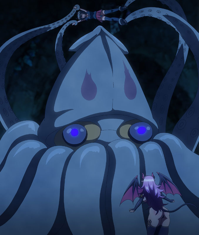 巨大生物にHな悪戯をされながらも、