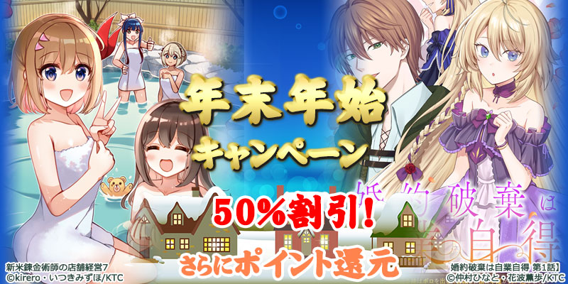 年末年始キャンペーン 50%割引のうえポイント還元