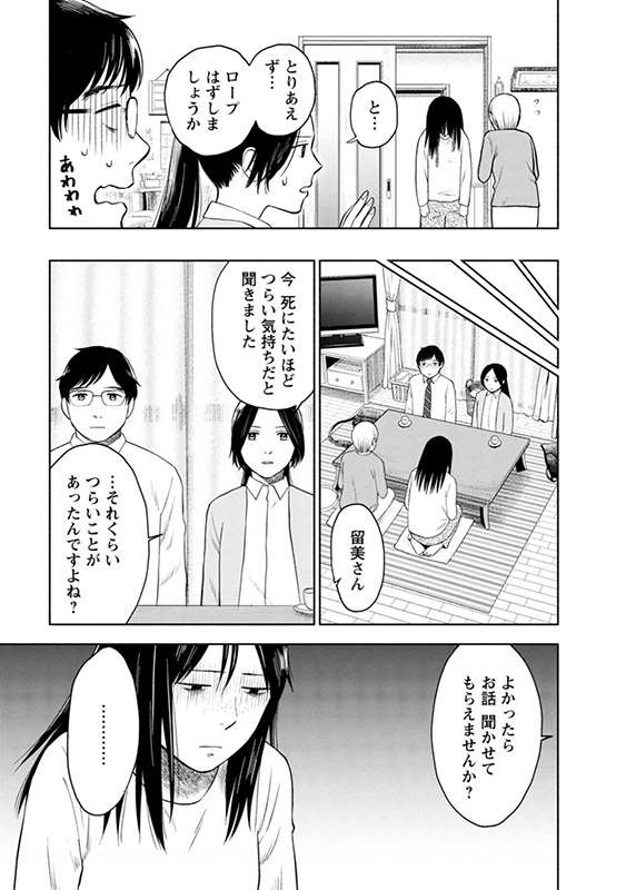 基 羊介はある日職場の上司が自殺したことをきっかけに、脱サラして保健所の保健予防課に転職した新人の精神保健福祉士。保健予防課では「死にたい」と悩む人々の相談に日々応じているが、その対応は一筋縄ではいかず――…。