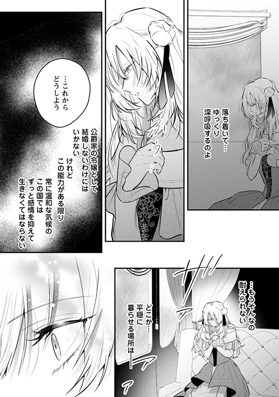 感情が天候に反映される公爵令嬢・シャルロッテ。喜怒哀楽を抑えて生きる彼女に対し、婚約者の第一王子は婚約破棄を告げる。我慢の限界を迎えた彼女が不毛の大地にある王国へ嫁ぐと、国王アズールに愛を誓われて…!?