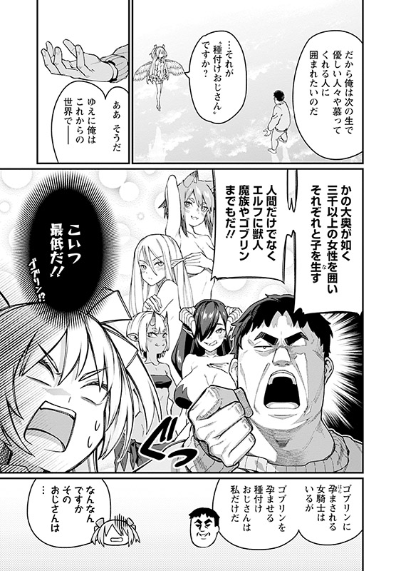 孤独死してしまった男は女神ニケに「動けるバージョンの種付けおじさん」になりたいと願い、自らにゲンジと名付けて転生した。