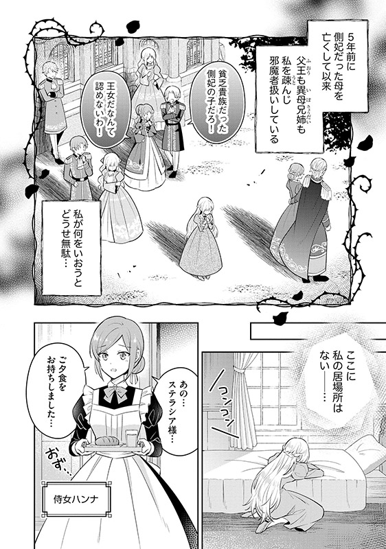 セントガイア国の王女・ステラシアは、側妃だった母を亡くして以来、父王にも異母兄弟にも疎んじられてきた。