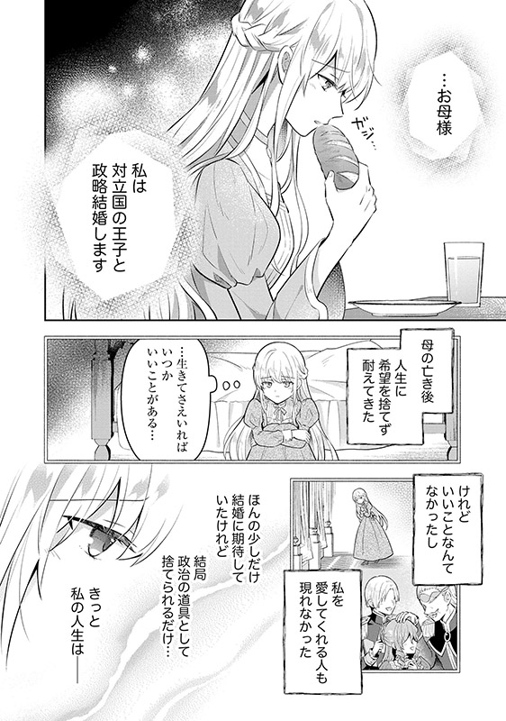 政治の道具として捨てられ、嫁ぎ先でも対立国の姫だからと歓迎されず…そのまま空腹のあまり倒れてしまった。