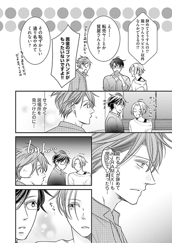 イケメンセラピストが恋人のように振舞いながら施術する、女性専用のマッサージ店『KIRAMEKI』。とある悩みを抱えて来店した新規客・かなみの担当は、優しい雰囲気が売りのセラピスト・ヤマト。
