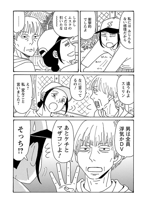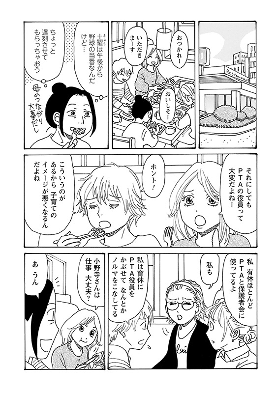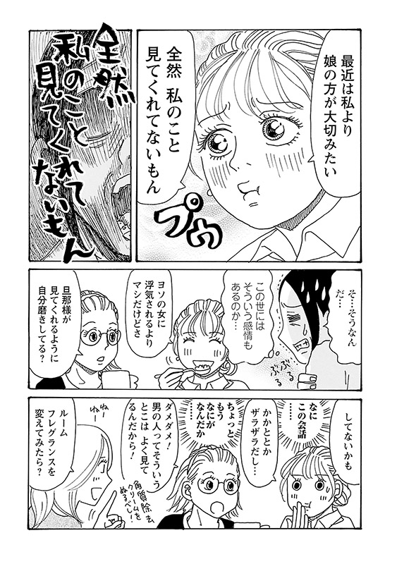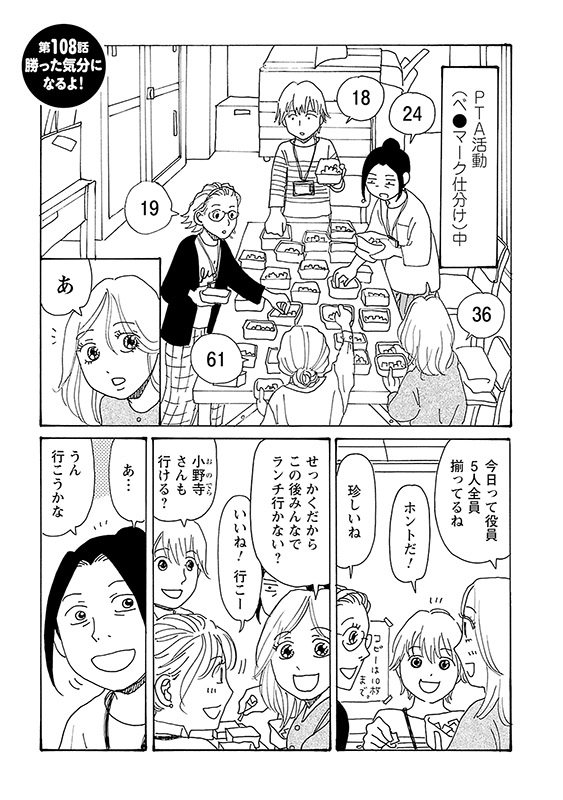 1人で支流に立つスミが突如、中学受験に魅せられたり、韓ドラ・見る将・マンガ(主にBL)と多趣味な恵子が、さらなる趣味を追い求めたり、熟女バー「かぶと虫」の敏腕ホステス・のりまき(マキ)が、迷える子羊たちを救いまくったりする第13巻は、3人のほかに、老婦人と小6男子が大活躍!