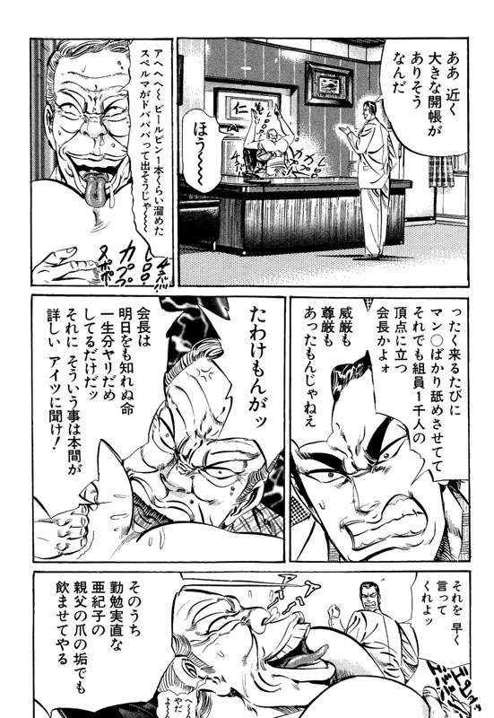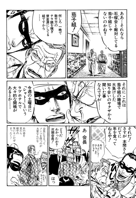 なんとこの老人は傘下団体30、構成員1000人以上を従える暴力団『関東石榴(ざくろ)会』の会長で、しかも紋次郎の実の父親・石丸次郎であった。