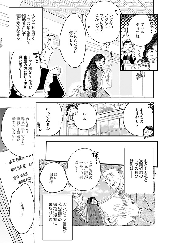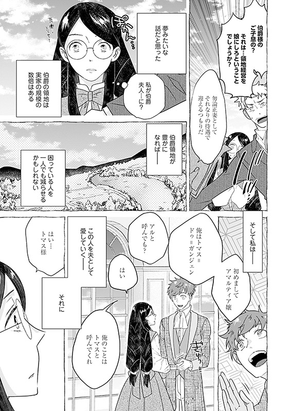 ──領地経営に優れた才能を持った子爵令嬢のアマルティア。その才能を見込まれ次期伯爵・トマスの婚約者にと望まれる。
