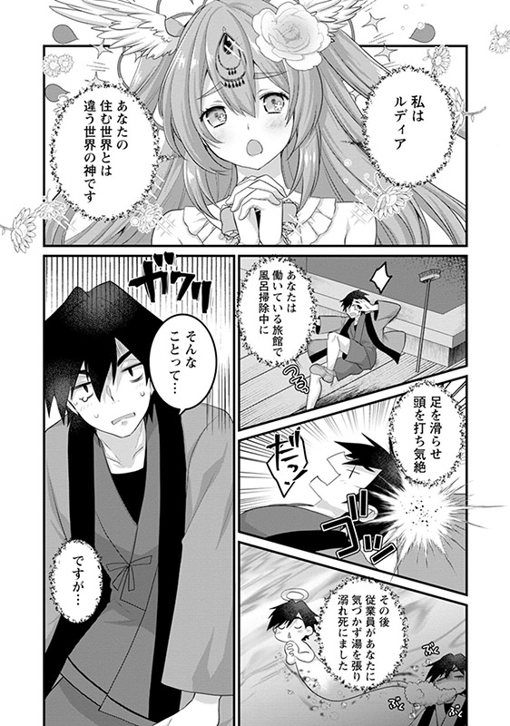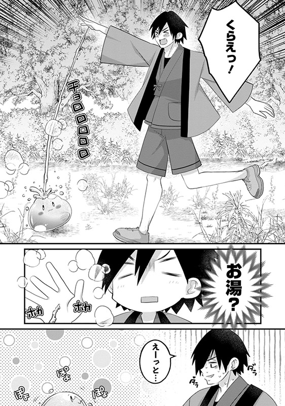 チートスキルを授かり、現代から異世界へと転生した元旅館従業員の遠野ジン。転生して束の間、モンスターと遭遇したジンはスキルで抵抗を試みるが、ただただ手からお湯が出るだけ!?
