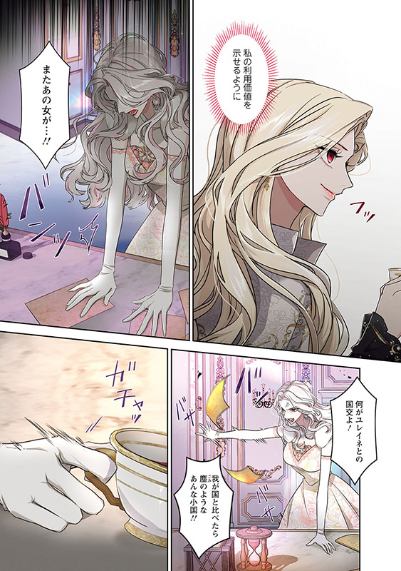 敵国皇帝”暴君”ゼフォンのもとに嫁いだラース。ゼフォンとの外泊を聞きつけた第6夫人・カミラからの嫌がらせを返り討ちにしたラースだったが、カミラの嫉妬は収まらず、ラースの唯一の従者・シングの口を切り裂かれてしまう――。