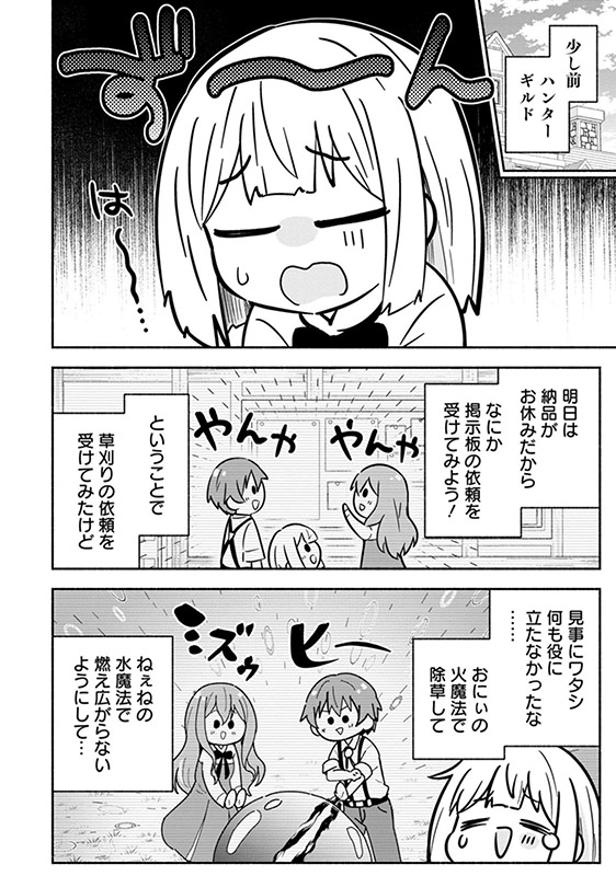 スラムを出てすぐにハンターギルドに呼び出されたおチビ(5歳)。見た身のコワ〜い大人に囲まれて絶体絶命のピンチ!…と思いきや、カワイイ孫を見るような優しくて温かい大人たちだった…ほっとするね!