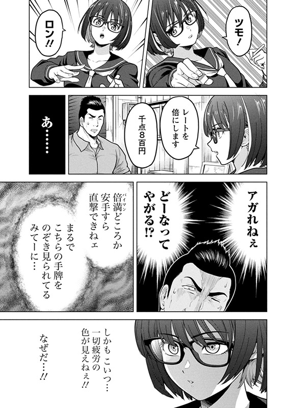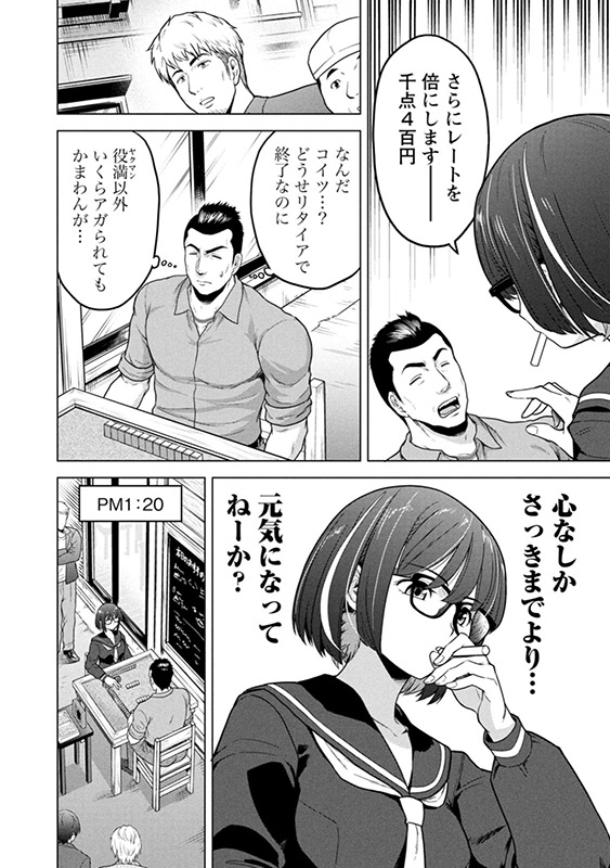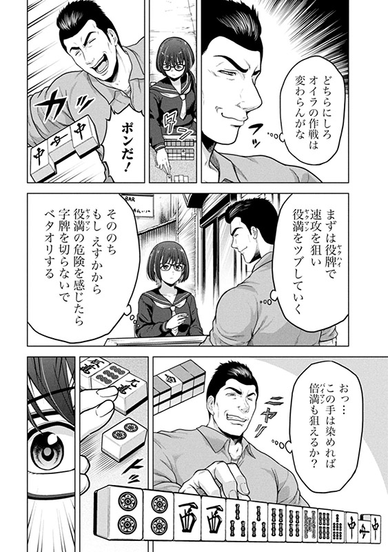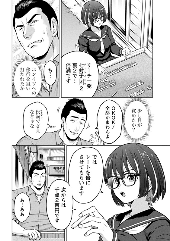 第2巻では、体力自慢の男と役満を上がるか、相手がリタイアするまで勝負が続く「完全決着麻雀」が完結。さらに伏せ牌のウソを見抜いて指摘する「ダウト1」勝負。