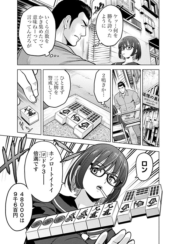 新宿トー横で行なわれている1対1の路上特殊麻雀。ここで最強の名をほしいままにする少女・えすかがいた。彼女は、自身の自由を、麻雀で勝ち取ってきた――。