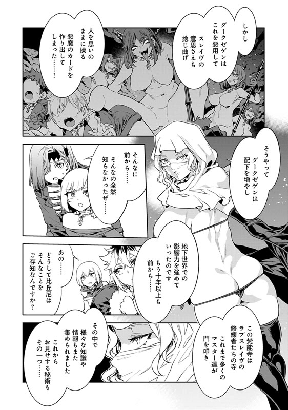 世界ラブスレイヴトーナメント本戦へと勝ち進んだ優斗と咲鬼は、彩葉に導かれ、烈やレオ達と共に『梵能寺』を訪れる!! そこでは寺を治める舞玄比丘尼率いる大勢の”元野良スレイヴ”の尼僧を相手にする、壮絶な修行が待ち受けていた!! そして試練は咲鬼にも…!? 過酷な修行を越えた先、彼らを迎えるものとは!?