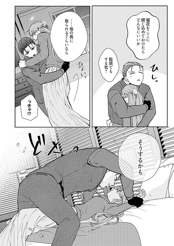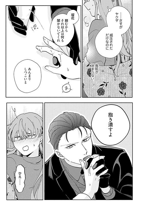 社畜の篠宮瑠花(しのみやるか)は年末に鍵を無くしてしまい絶賛ピンチ中。今日は愛猫に人肌の恋しさを慰めてもらおうと思ったのに!そんな中、隣人であり幼なじみでもある東郷一茶(とうごういっさ)が通りかかる。普段とは様子の違う一茶を助けようとして瑠花のとった行動とは?感じちゃうのは媚○のせい!? そして一茶が瑠花を守るために出した提案とは?2人の危険で甘い溺愛ラブロマンス。極道の彼から与えられる極上の溺愛の行方は、甘いだけじゃ終われない!?
