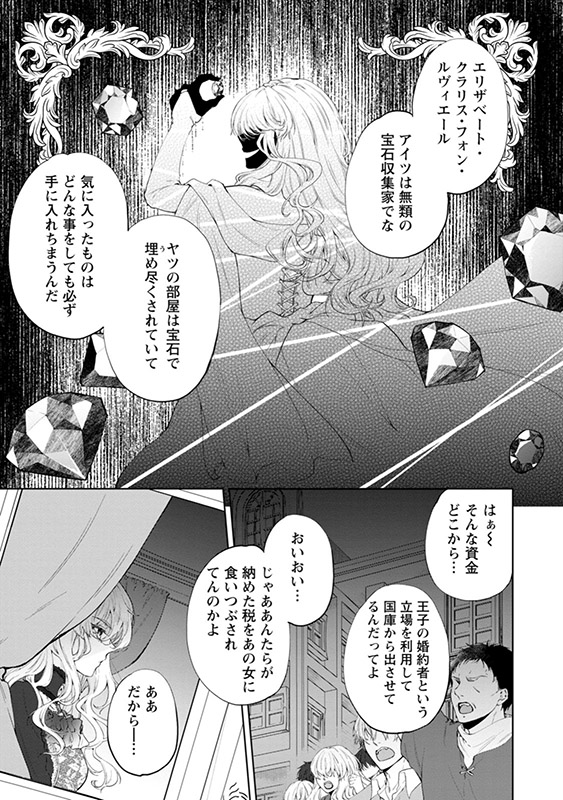 大量の宝石を収集し、国民から『宝石喰いの悪女』と嫌われている公爵令嬢・エリザ。