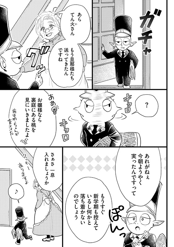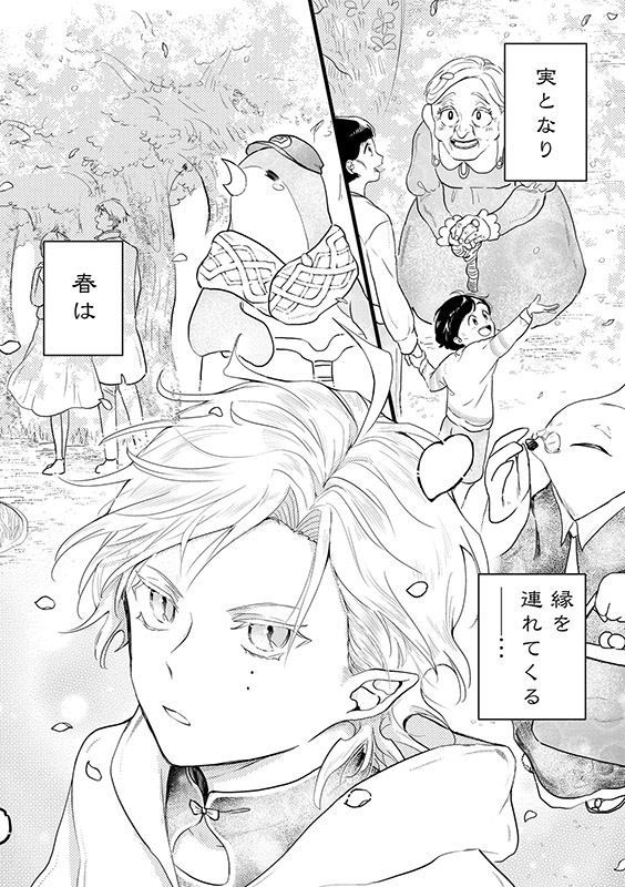 兄の手帳に記された情報を頼りに世話をし、ようやく桃の実が成った日…精霊の男の子・清志と出会う。