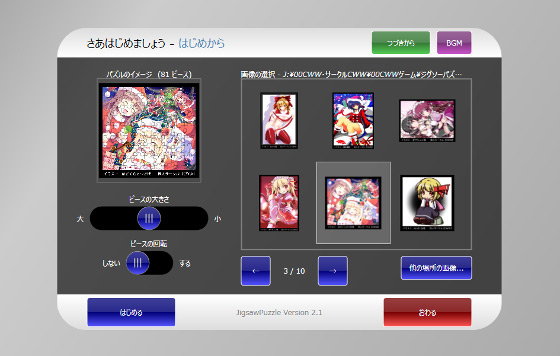 ジグソーパズルイラスト30種+BGM16種類に加え、