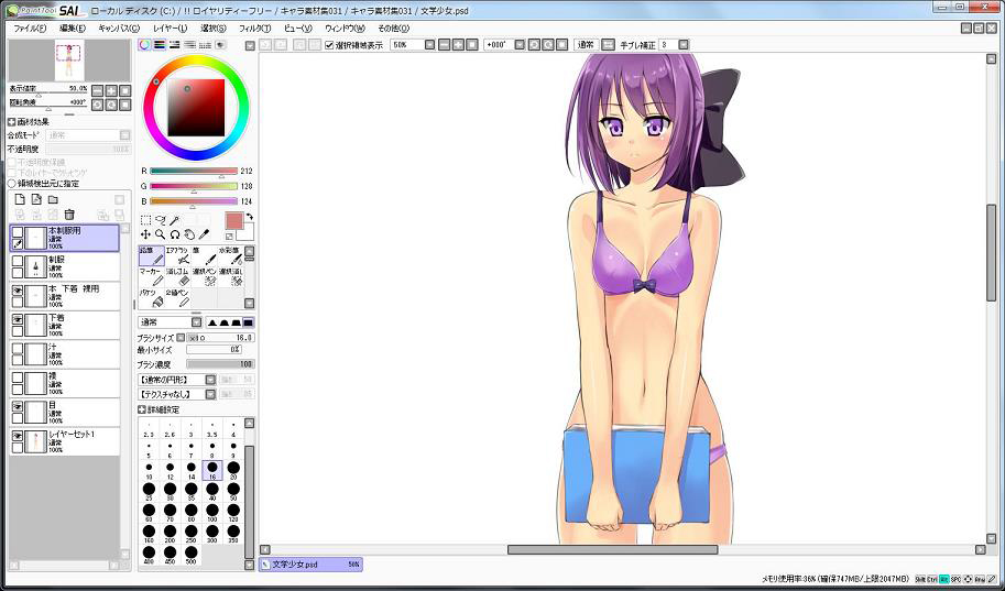 PSDファイルは、キャラクターの目や口、髪型等が