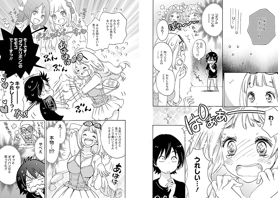 ラジオ番組に投稿したネタが採用されて笑いを取る。 ハ○○職人でもある男子高校生・北野夏美の高校生活は、パッとしていなかった。女芸人コンビ・ダブルリボンのモモコはライブで笑いが取れず、芸人としてパッとしていなかった。 そんな男子高校生と年上の女芸人が出会ったら…!? 客も相方も笑わせる、青春コメディーラブ!!