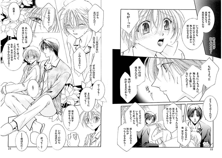 高春の大好きな叔父・まぁにいちゃんこと正也が、外国留学から七年ぶりに帰ってきた。小さい頃身体の弱かった高春をよく世話してくれた正也は、大きくなった高春にも昔と変わらない触れ方をする…。でも、七年の間に高春の「好き」の意味は変化していて…? まぁにいちゃん、そんなふうに触れられると俺、えっちなコト考えちゃうんだけど…。