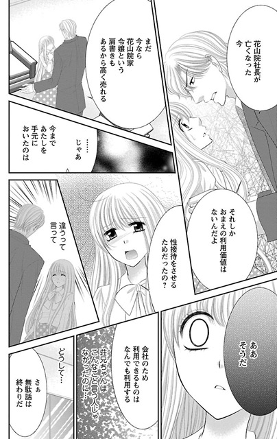 昔から優しく頼りがいがあり、淡い恋心も抱いていた義兄に会社の道具として扱われるようになってしまう!!銀行の頭取の息子や、ホテルオーナーの御曹司など、妃花を高く買い取ってくれる相手へ接待へ赴く毎日……。彼らの歪んだ性欲に翻弄されながらも義兄の思惑を未だに信じられずに……。