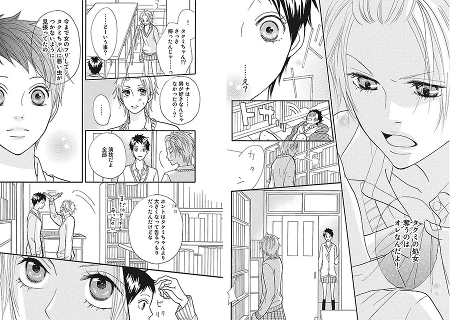 ガサツで背も高くて女のコ扱いされないのが悩みのタクミ(女子)は、自分よりも可愛くて男にモテるヒナタ(オネエ系男子)に振りまわされる日々。しかし、ひょんなことから「タクミの処女を奪うのは俺だ!」とヒナタが言っているのを聞いてしまい… トキメキ全開!の男女逆転ラブストーリー☆【桃色日記】
