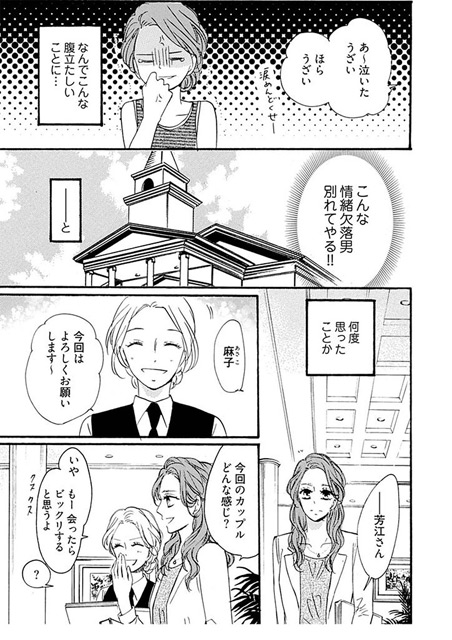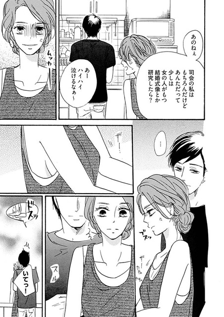 担当した披露宴で、花嫁に自分の身代わりになってほしいと頼まれた、司会者の芳江。花嫁とは、双子みたいに顔が似ているとはいえ、新郎や家族、友人たちはもちろん、同じ式場で働いているドS&毒舌な自分のカレシまでだますなんて…絶対にムリ!ムリ!ムリ〜〜!!
