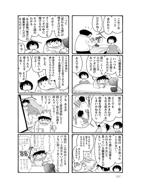 小心者な漫画家の「僕」と美人だけど短気な「妻」の、ゆる〜い日々の出来事をつらつらと描くエッセイ風4コマ。○○も生まれました。この漫画は主人公(=作者)の愚痴と妬みと妻子への愛で出来ています。『僕の小規模な生活』(講談社)とあわせて読むとより一層楽しめます。