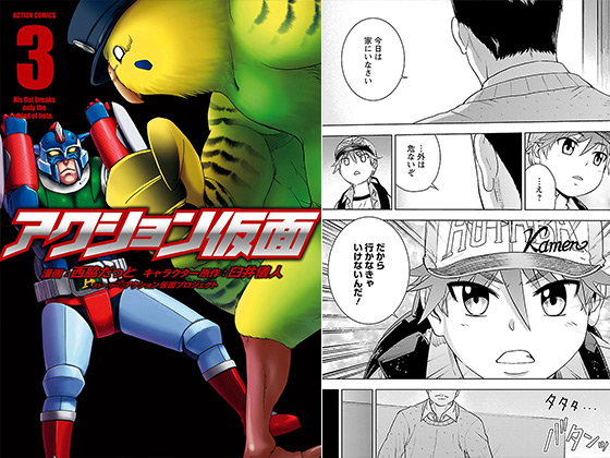 国民的ギャグ漫画『クレヨンしんちゃん』に登場する“アクション仮面”を『Fate/stay night』の西脇だっとがリアルに描く本格ヒーローアクション第3弾。