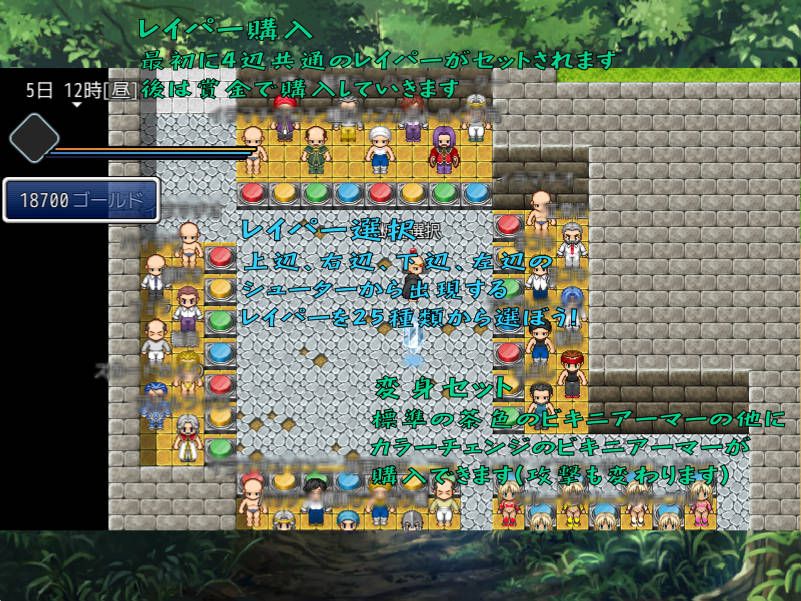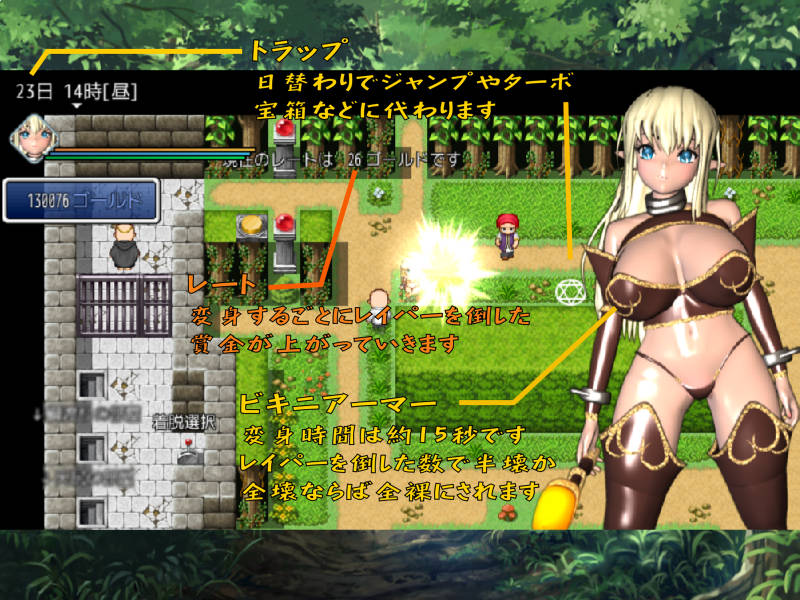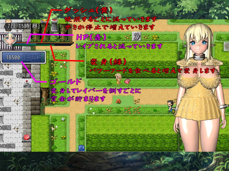 変身してレイパーをやっつけて賞金を稼ぐゲームです。